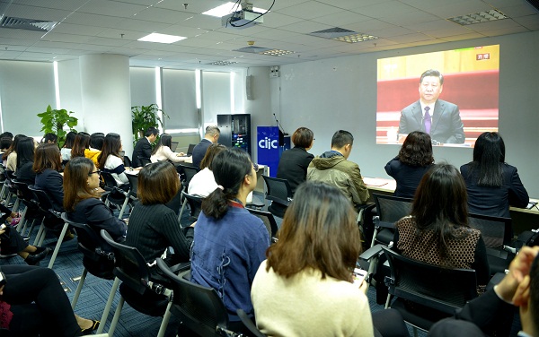 中智公司組織總部職能部門全體干部員工、女工委員、女工代表、在京分支機構(gòu)班子成員及部門負責(zé)人、職工代表等百余人在公司總部多功能廳集中收看了實況直播。同時,中智公司在全國各地的所有分支機構(gòu)積極落實組織全體員工認真收看大會直播。全體黨員干部員工身著正裝、佩戴黨徽,懷著激動和振奮的心情共同見證和回顧了改革開放40周年的偉大進程。慶祝大會國歌響起,奏響了改革開放40周年的輝煌序章,40年眾志成城,40年砥礪奮進,40年春風(fēng)化雨,中國人民用雙手書寫了國家和民族發(fā)展的壯麗史詩。